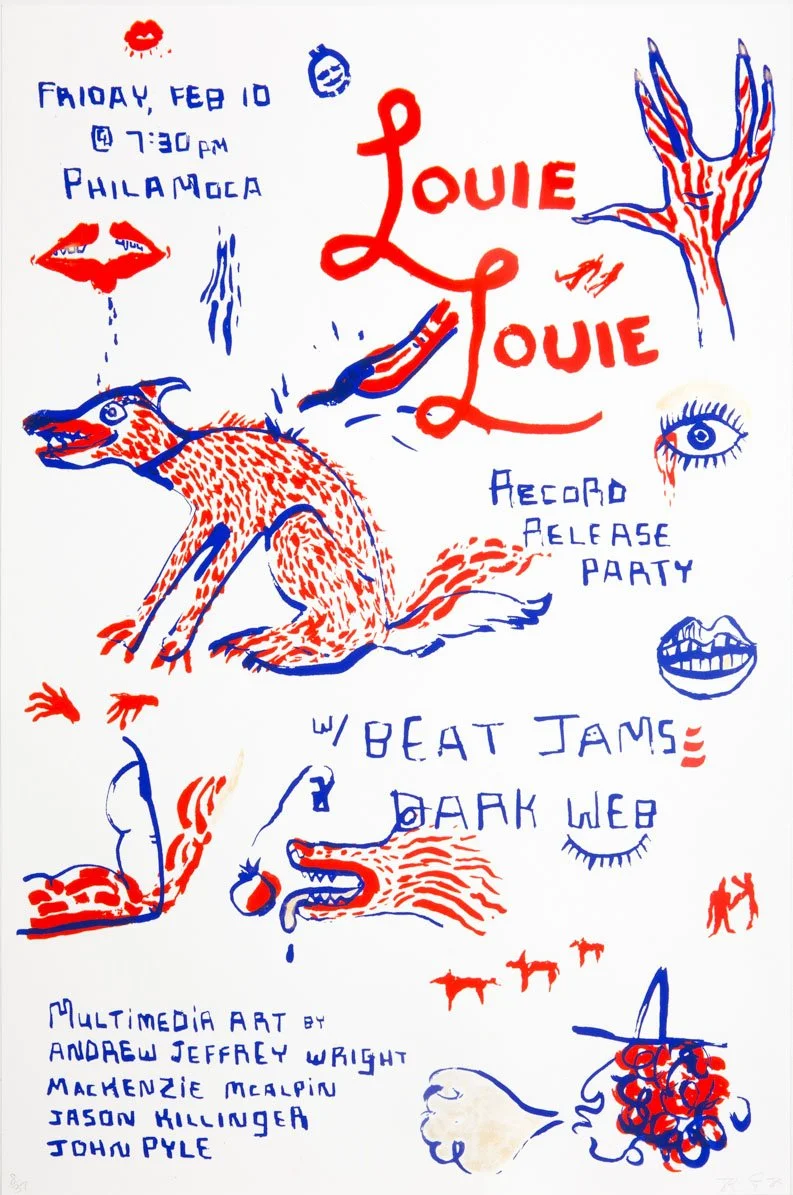 Louie Louie was a short-lived, 4-piece garage pop band for which I was the drummer and unofficial outfit-maker. Approaching it as a wide-ranging art project, each member took lead on a different element and it coalesced in a messy exploration of art, music, and performance.